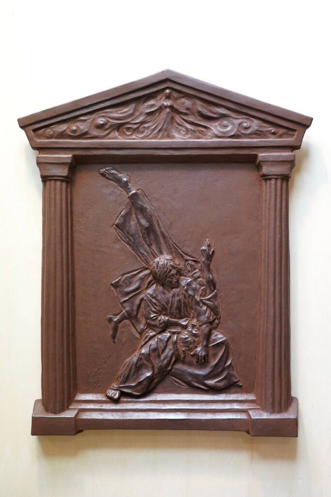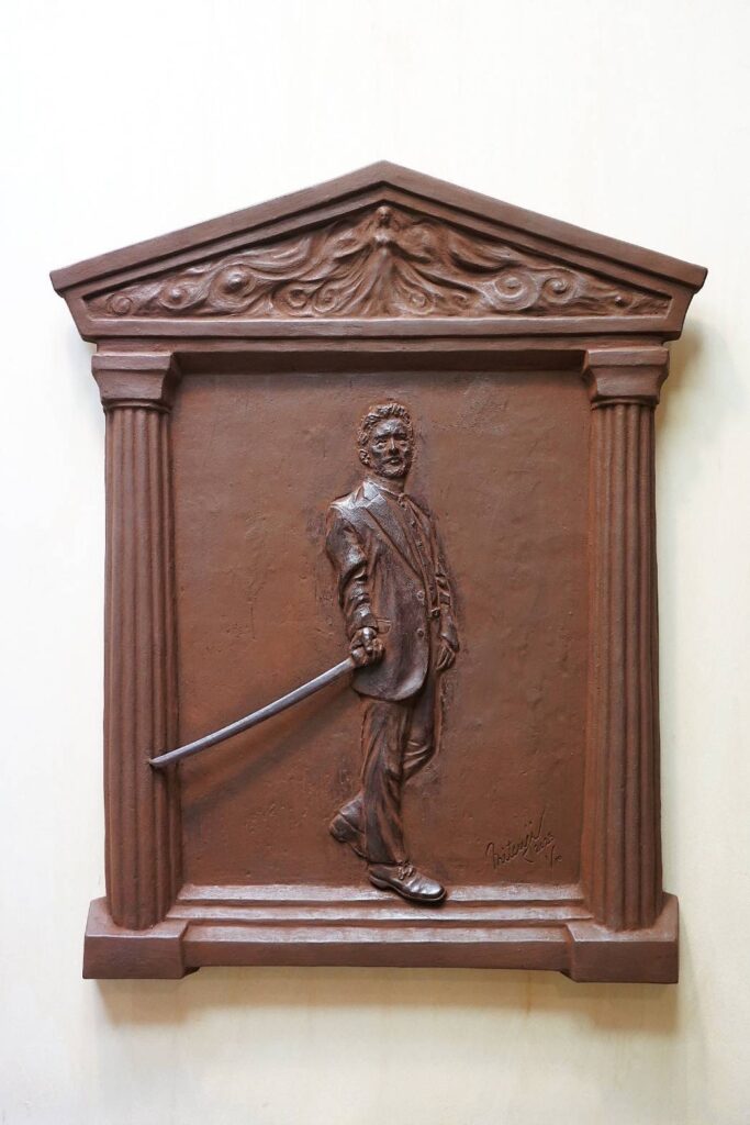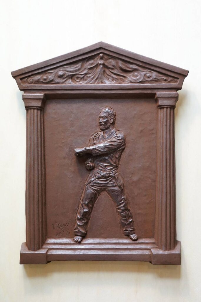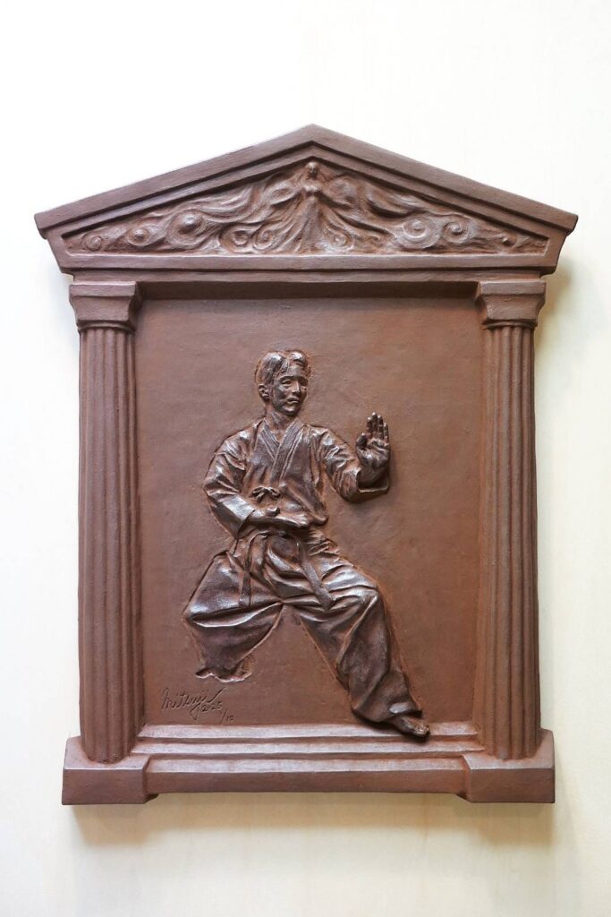 5人の武道家レリーフが公開。白川先生と北川先生は12日13時〜14時に在廊予定。